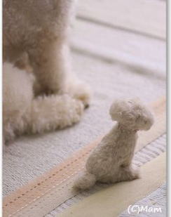 ■ 羊毛でお作りした子を 私は 『ちびぐるみ』 と呼んでいます 羊毛やアルパカ等の獣毛を使用し 愛犬に似せた子を完全オーダーメイドで お作りしています。 犬種は問いません。 ポーズや表情もご希望に添って 色々と付けられますが 可動はしません。 ニードルフェルト手法です。